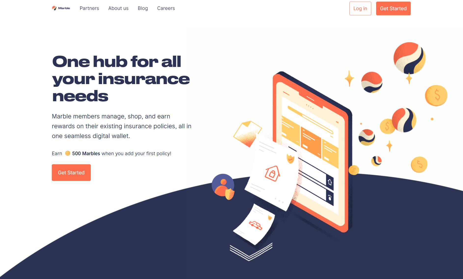 Marble is the first all-in-one account and rewards program for insurance. Marble members earn cash rewards for the policies they already have — including auto, home, renter, life, pet, and more — and take control of (and save on) their ins